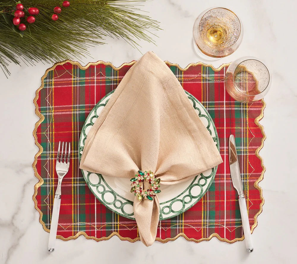 Gem Wreath Napkin Rings in Red, Green & Gold, Set of 4 in a Gift Box