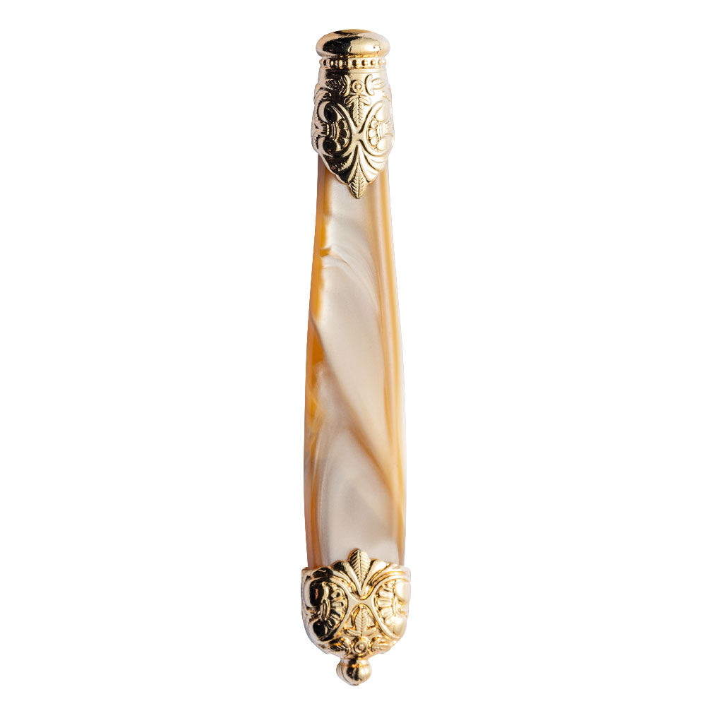 Mirage Tin Gold is a luxury cutlery range of aristocratic taste which recalls the splendor of the Baroque period. Made of mirror-polished steel with a golden PVD finish and coloured resin handles with mother-of-pearl effect, this cutlery line is distinguished by its double ferrule; one of these joins the steel part, and the other is the end of the handle. The ferrule decoration is inspired by the friezes and stuccoes used to decorate villas and historical buildings, and gives the table a taste of past nobility. The various colours available make it possible to create personal combinations with classic style porcelain and tableware, even in everyday life.