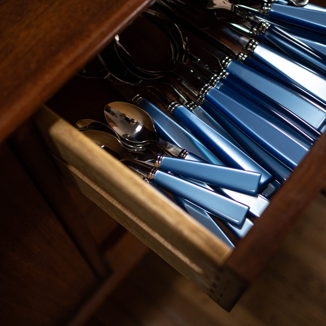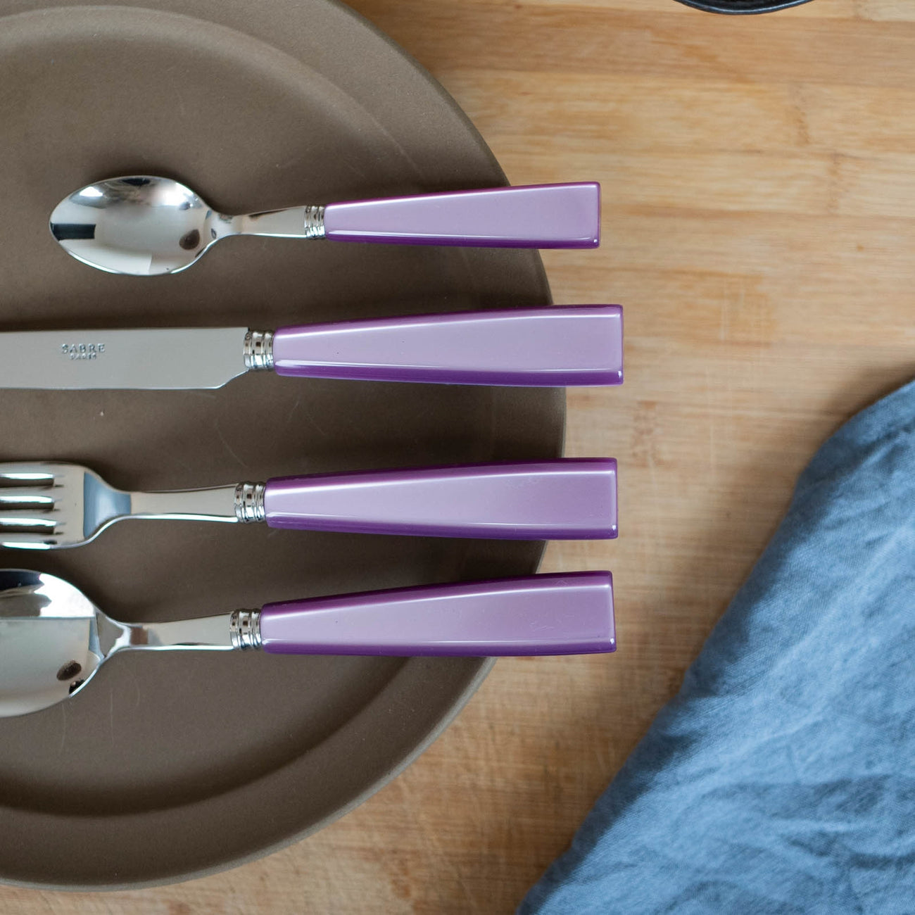 If you’re looking for elegant but distinctive tableware, the Icône collection is perfect for you. With its sleek styling and its 21 colours featuring a slightly retro touch, you’ll definitely find the cutlery set just right for your table. An original and a Best Seller: what makes it so popular is its originality, something rare enough to be highlighted! The Sabre 4-piece sets are comprised of a soup spoon, a dinner fork, a dinner knife and a teaspoon. This 4-piece set offers the perfect combination for your day-to-day meals.