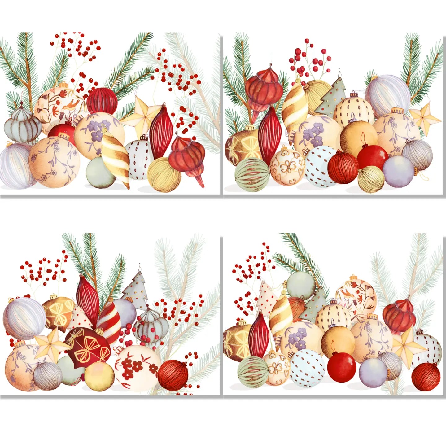 Set of 4 placemats in pure linen digitally printed. Each placemat has a different Christmas design. Placemat measures: 38 x 52 cm. / 14.96 “W, 20.47 “L Linen 100%
