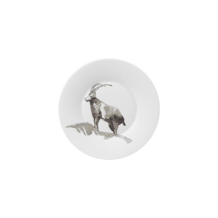 The Piqueur Collection also impresses with the wide range of motifs available for a single shape. One version of the small cake and bread plate shows an ibex.