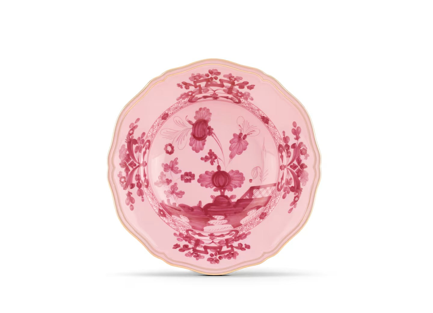 The celebrated carnation motif contrasts against the deep purple-pink porcelain while the distinctive gold threading illuminates and enhances the design. Available in several beautiful colors, they complement the service of soup, flat and dessert plates of the same line. Oriente Italiano is a collection of porcelain tableware, tea and coffee services and home accessories available in a variety of colors, each of which is designed to characterize an individual place setting or to be mixed in striking combinations that render the mise en place original on each and every occasion.
